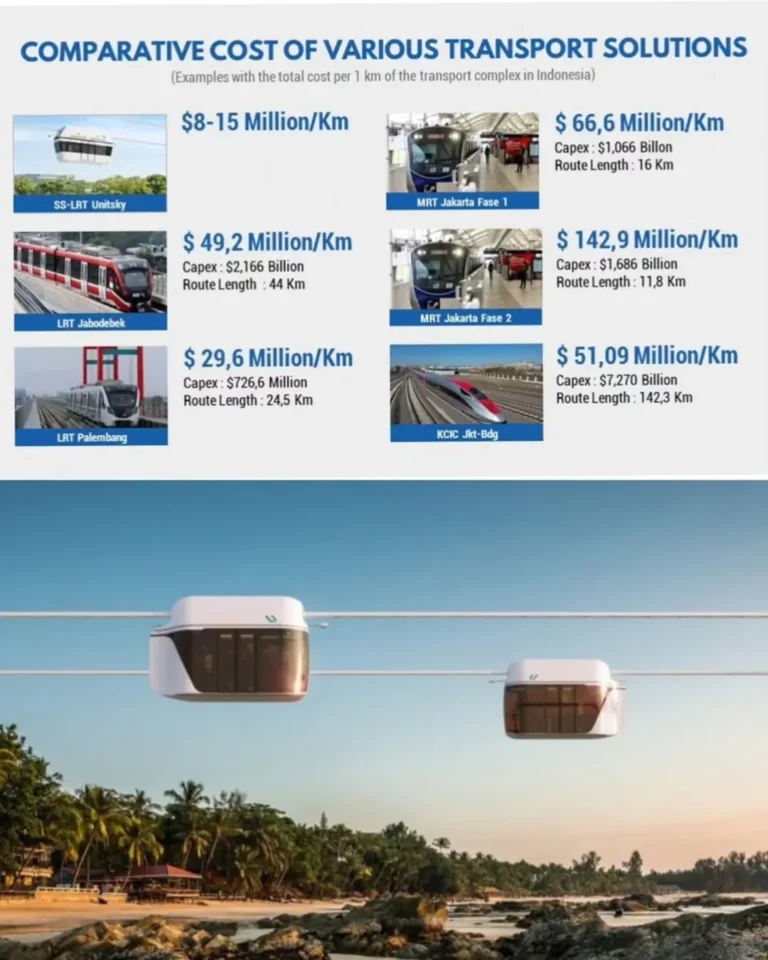 Desain kereta gantung Unitsky tengah diperkenalkan sebagai salah satu sistem transportasi urban baru yang akan menghubungkan kawasan Mekarsari, Cileungsi, dengan Stasiun LRT Harjamukti di Depok. Rute sepanjang ±11,5 kilometer ini direncanakan menjadi jalur feeder yang menghubungkan permukiman padat menuju jaringan LRT Jabodebek. Dengan estimasi kebutuhan angkutan hingga 12.000–15.000 penumpang per jam per arah pada koridor tersebut, proyek ini berpotensi menjadi elemen penting dalam peningkatan konektivitas kawasan Jabodetabek yang terus berkembang.