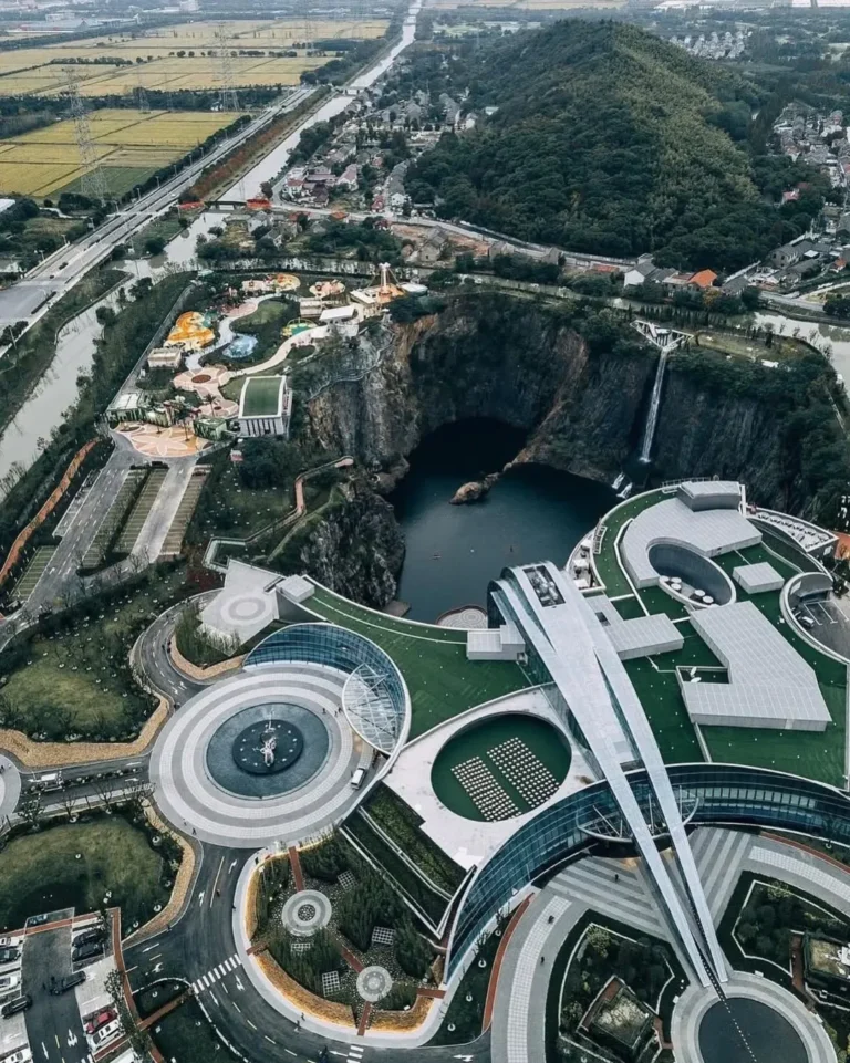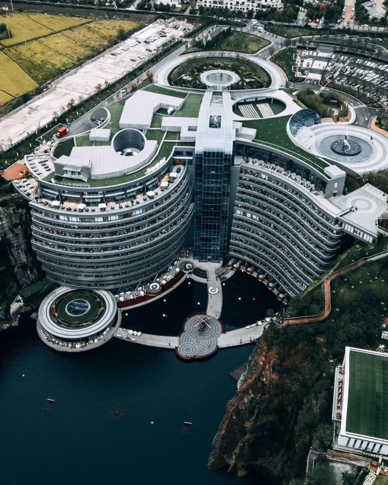 Terletak di distrik Songjiang, Shanghai, Tiongkok, Intercontinental Shanghai Wonderland merupakan salah satu karya arsitektur paling spektakuler di dunia. Hotel mewah ini dibangun di dalam bekas tambang sedalam lebih dari 88 meter dan dirancang oleh arsitek asal Inggris, Martin Jochman (@martin_jochman). Dengan memanfaatkan lanskap ekstrem, proyek ini membalikkan konsep gedung pencakar langit menjadi “Earthscraper”, yaitu bangunan yang justru menggali ke dalam bumi, bukan menjulang ke langit.