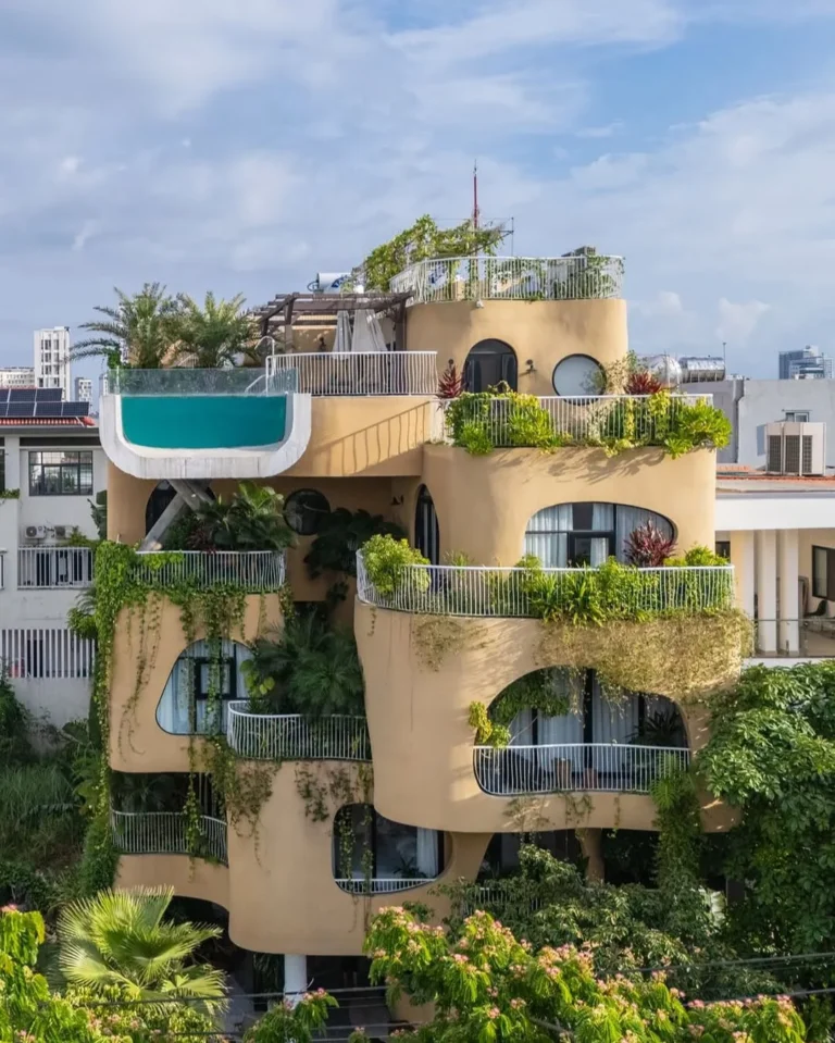 Hotel ini dirancang oleh Ho Khue Architects (@hokhue_architects), sebuah firma arsitektur Vietnam yang dikenal dengan pendekatan kontemporer berakar pada identitas lokal. Pada proyek ini, mereka menghadirkan desain yang tidak hanya memanjakan mata, tetapi juga menciptakan harmoni antara bangunan dan lanskap pesisir Da Nang.