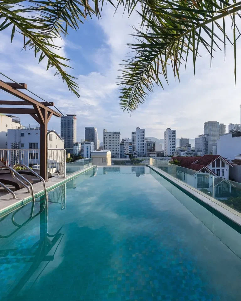 Saha Casa Boutique di Da Nang, Vietnam, menghadirkan salah satu atraksi arsitektur yang memikat: kolam renang kaca di atap gedung. Kolam ini menjorok sejauh 6 meter dari fasad, menciptakan pengalaman dramatis bagi pengunjung yang seolah melayang di udara. Dengan pemandangan laut lepas dan horizon biru, fasilitas ini segera menjadi ikon baru yang menarik wisatawan lokal maupun mancanegara.